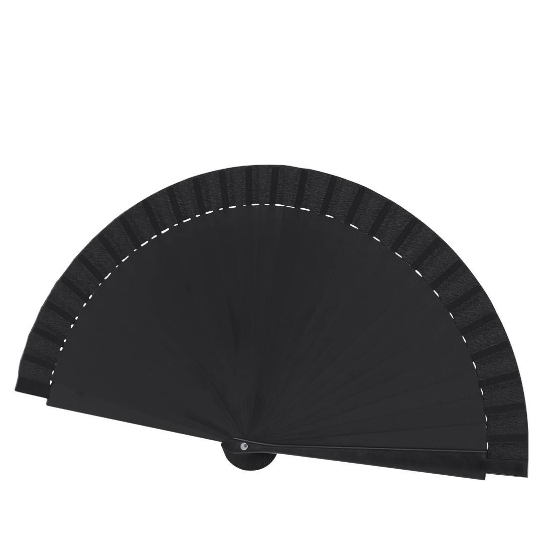 Abanico con varillas en PP y tela de poliéster 210D a juego. De diseño resistente y ligero.