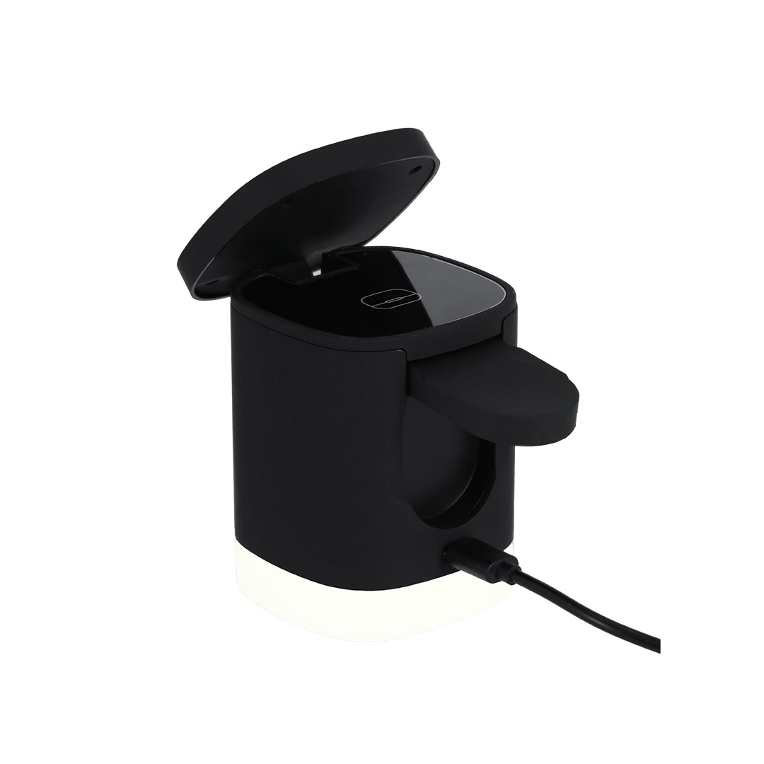Cargador inalámbrico magnético 3 en 1 de 15W, fabricado en ABS reciclado (RABS). Diseñado para la carga simultánea del smartphone, auriculares y smartwatch. Cuenta con lámpara integrada en la base con 2 modos de luz ajustables en blanco.Clave tipo C incluido. Un gadget todo en uno: plegable, portátil, versátil y de diseño funcional.El RABS es un plástico altamente reciclable de gran resistencia y con multitud de aplicaciones que lo convierten en una solución eco-friendly. Fabricado conforme a los estándares RoHS y en cumplimiento con los siguientes requisitos de seguridad:Sistema de protección contra sobrecalentamiento.Sistema de protección contra sobrecarga.Sistema de bloqueo para evitar cortocircuitos. Luces Led. Inalámbrico 15W. Magnético