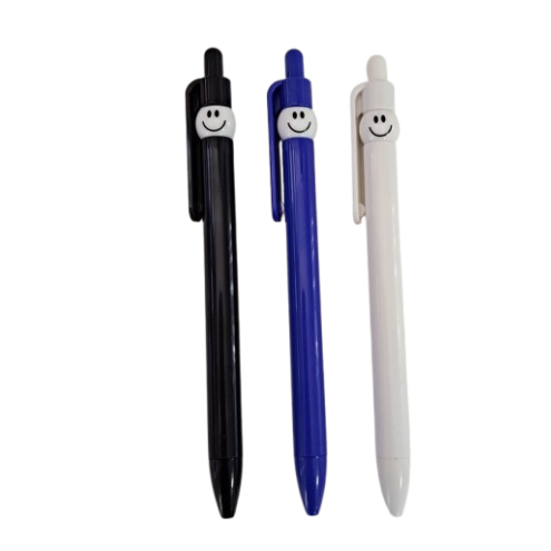 Bolígrafo de mecanismo pulsador. Fabricado en variada gama de colores con clip plano para impresión, de tinta azul.