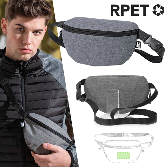 Bandolera confeccionada en poliéster RPET 600D, destacando por su bolsillo central de cierre cremallera y un compartimento frontal de fácil acceso. Equipada con una cinta ajustable para mayor comodidad y una etiqueta distintiva de RPET. Presentada individualmente en bolsa reciclada. El material RPET se elabora a partir de plástico reciclado, para así fomentar la reutilización de residuos plásticos y ayudar a la sostenibilidad del planeta.