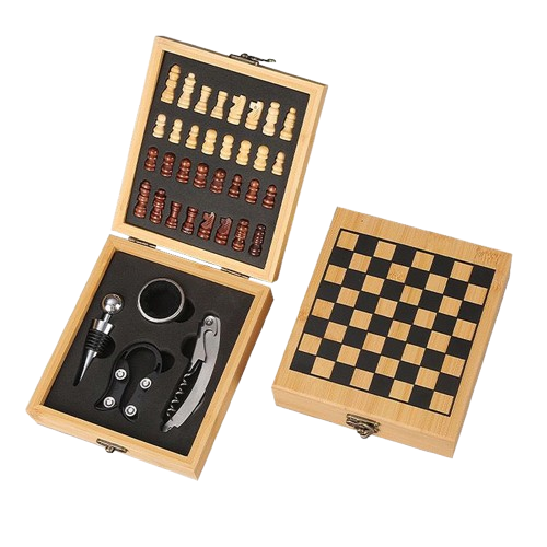 Práctico set de vinos con 4 accesorios. Contiene un sacacorchos eléctrico alimentado por 4 pilas AAA (no incluidas), decantador, tapón para botellas y cortacápsulas, con mecanismo a presión. Incluye, una elegante base negra para tener los accesorios ordenados. Presentado en caja de diseño kraft. 4 Accesorios