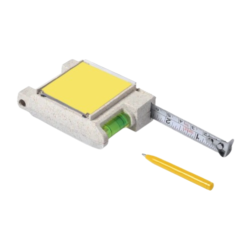 Wincha de 5 metros de línea nature, fabricado en combinación de bambú y ABS con tacto goma. Hoja metálica con freno, clip metálico para cinturón y cinta de transporte en PU. Con amplia superficie de marcaje y presentado en atractiva caja de diseño eco. Con Freno y Clip Incluido