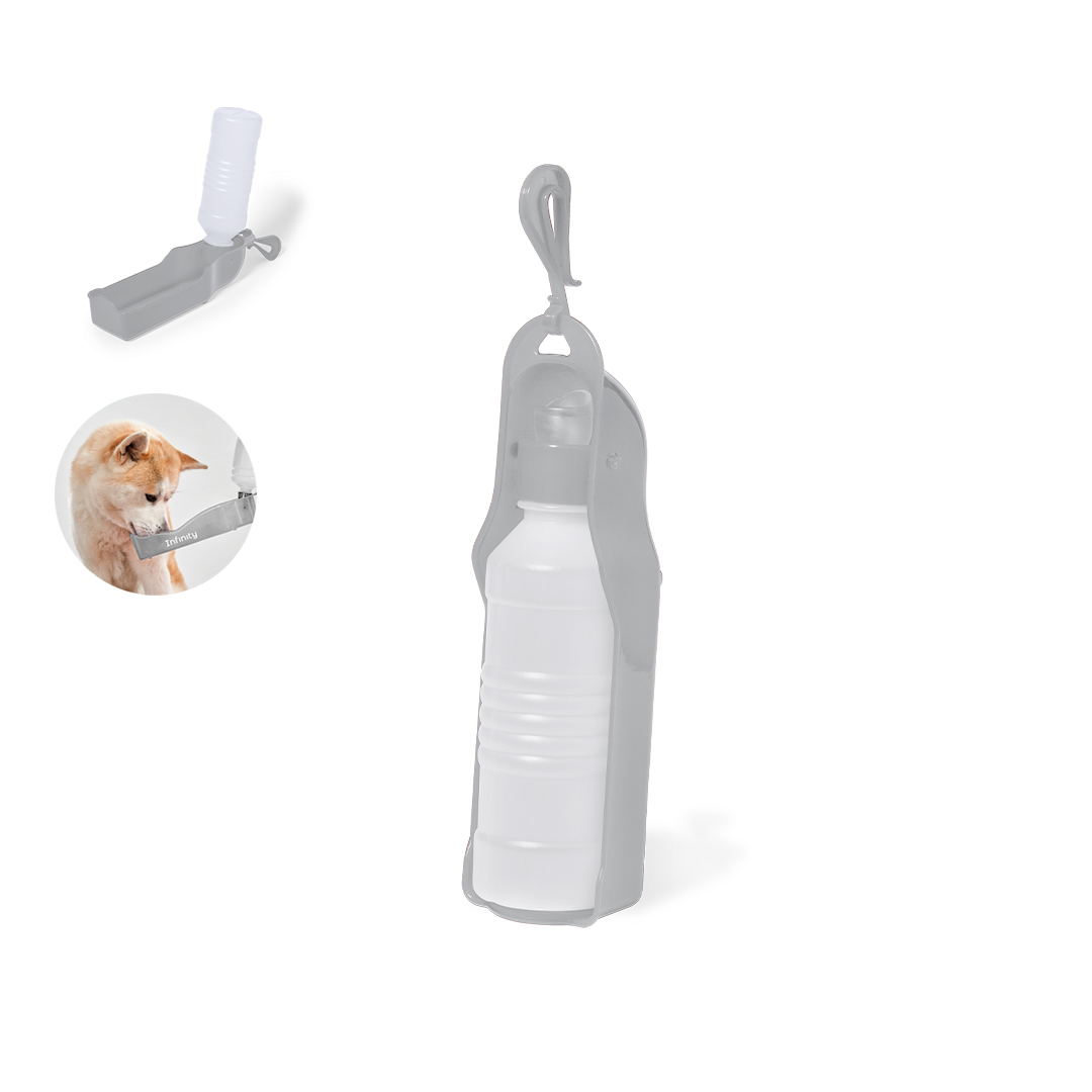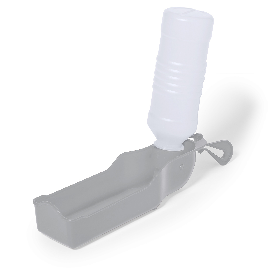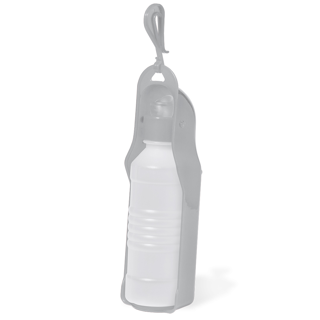 Práctico bidón y bebedero para mascotas de 250 ml de capacidad, fabricado en resistente PP. Fácil de usar, solamente hay que poner el bidón en posición vertical y presionarlo hasta que el bebedero se llene con la cantidad de líquido deseada. Con gancho de ajuste y presentado individualmente en caja de diseño kraft. 250 ml