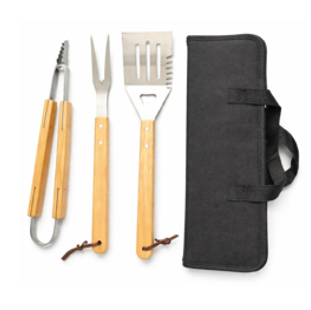 Material: Acero y Nylon. Medida: 39 cm x 11 cm x 3.5 cm. Incluye: 1 Pinza, 1 Trinche, 1 Cuchillo, 1 Estuche de nylon con cierre.